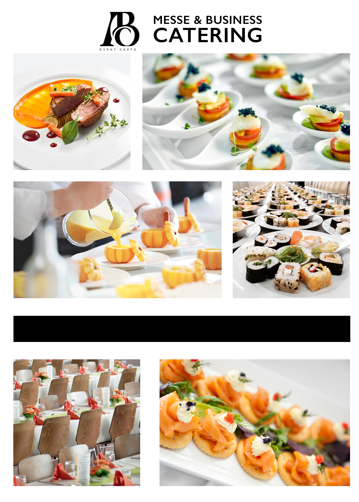 Wir unterstützen Sie mit unserem Komplettservice auf Abendveranstaltungen, Betriebsfesten, Jubiläen, Konferenzen sowie Messen & Großveranstaltungen. Kleine Speisen für Ihre Gäste, ein komplettes Mittagsmenü auf einer Messe oder in Ihrer Firma, Buffets für Abendveranstaltungen, Flying Finger Food oder individuelle Konzepte ganz auf Ihre Bedürfnisse & Vorstellungen abgestimmt, damit Ihre Veranstaltung ein exklusives & kulinarisches Erlebnis wird.